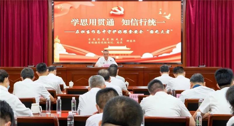 為推動(dòng)學(xué)習(xí)貫徹習(xí)近平新時(shí)代中國(guó)特色社會(huì)主義思想主題教育走深走實(shí),5月31日,省發(fā)改委黨組成員,省糧儲(chǔ)局黨組書記、局長(zhǎng)鐘昌華以“學(xué)思用貫通 知信行統(tǒng)一——在擔(dān)當(dāng)作為中守護(hù)好糧食安全‘國(guó)之大者’”為主題,開(kāi)展主題教育專題黨課。省委主題教育第九巡回指導(dǎo)組成員、省紀(jì)委監(jiān)委駐省委辦公廳紀(jì)檢監(jiān)察組副組長(zhǎng)、二級(jí)調(diào)研員石少龍蒞會(huì)指導(dǎo)。