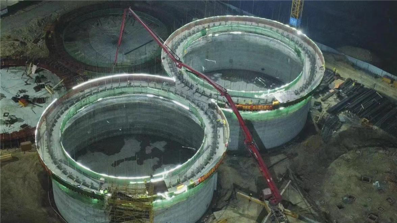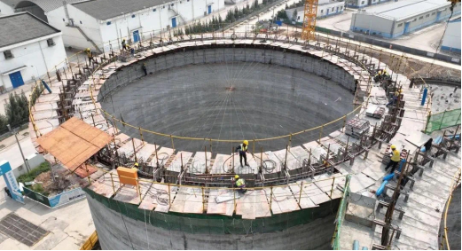 本次擴建的15座淺圓倉,單倉倉容1萬噸,直徑達27米,直徑大,滑模施工難度大,技術(shù)含量高,且必須連續(xù)作業(yè),為了做好本次滑模施工工作,參建各方在施工前期對作業(yè)人員施工安全、混凝土供應(yīng)、施工用電用水、突發(fā)天氣等各種影響因素做了充分的預(yù)控和應(yīng)急準(zhǔn)備。滑模施工開始以來,項目各方凝心聚力、通力配合,加班加點、搶抓進度,歷時50多個日日夜夜,確保倉壁滑模順利完成,進入下一施工階段。