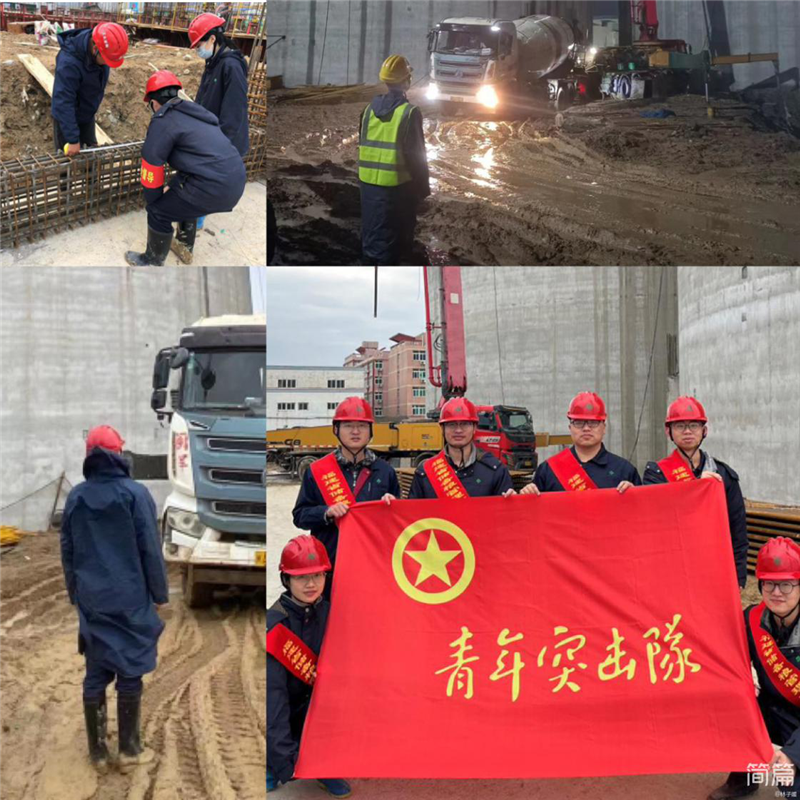 在滑模施工期間,強降雨天氣頻發(fā)的情況下,青年突擊隊頂暴雨、戰(zhàn)狂風(fēng),克服現(xiàn)場泥濘、加班加點,認(rèn)真對施工區(qū)域和辦公區(qū)域進行安全隱患排查,尤其是加強對滑模作業(yè)的防護,防范施工基坑存在的積水隱患,確保施工安全無隱患、無死角,展示了在關(guān)鍵時刻、危難關(guān)頭,扛得住壓力、頂?shù)米】简灥木耧L(fēng)貌。