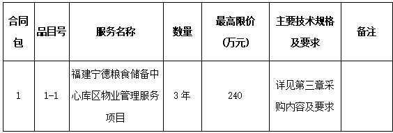2.服務內(nèi)容:福建寧德糧食儲備中心庫區(qū)物業(yè)管理服務項目,具體詳見第三章招標內(nèi)容及要求。