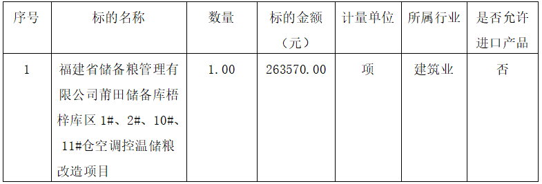 項目名稱:福建省儲備糧管理有限公司莆田儲備庫梧梓庫區(qū)1#、2#、10#、11#倉空調(diào)控溫儲糧改造工程