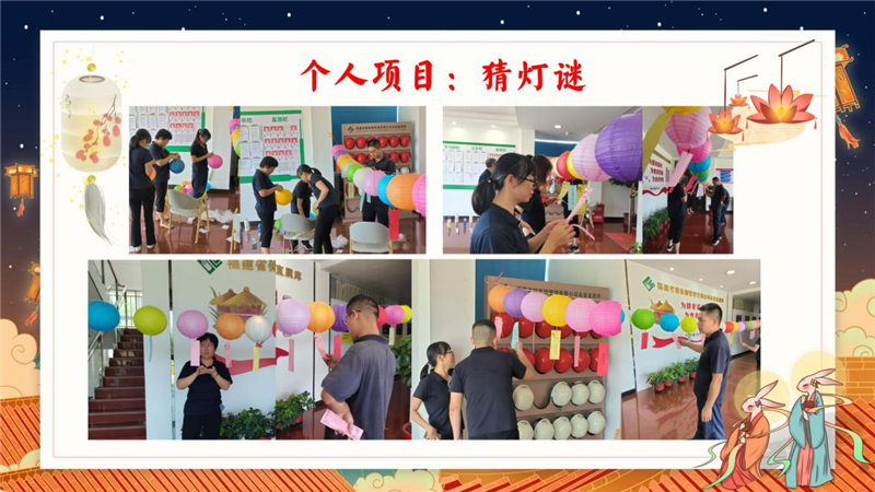 趣味文體活動(dòng)分個(gè)人及團(tuán)隊(duì)兩項(xiàng)內(nèi)容:個(gè)人項(xiàng)目猜燈謎、趣味套圈、仙人吹氣;團(tuán)體項(xiàng)目海底撈月、掌上明珠等豐富多彩的活動(dòng)。在猜燈謎環(huán)節(jié),謎底融入了糧食文化、倉(cāng)儲(chǔ)工作、安全生產(chǎn)等內(nèi)容,極具知識(shí)性和趣味性,讓員工在歡樂(lè)、文明、和諧的氛圍中感受中秋佳節(jié)濃郁的節(jié)日氛圍,緩解工作壓力,增強(qiáng)團(tuán)隊(duì)合作,拉近單位與員工之間的距離,提高單位的凝聚力、向心力和戰(zhàn)斗力。