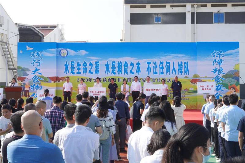 為深入學(xué)習(xí)宣傳貫徹習(xí)近平總書記關(guān)于樹立大食物觀的重要論述精神,在全社會營造重農(nóng)興糧的濃厚氛圍,以更加有力的舉措端牢14億多中國人的飯碗,10月16日上午,莆田直屬庫聯(lián)合莆田市發(fā)改委會、市農(nóng)業(yè)農(nóng)村局、教育局、科技局、婦聯(lián)、農(nóng)發(fā)行在市糧食聯(lián)合儲備庫舉行“世界糧食日”和全國糧食安全宣傳周活動啟動儀式。