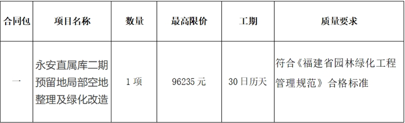 一、項目名稱:永安直屬庫二期預(yù)留地局部空地整理及綠化改造