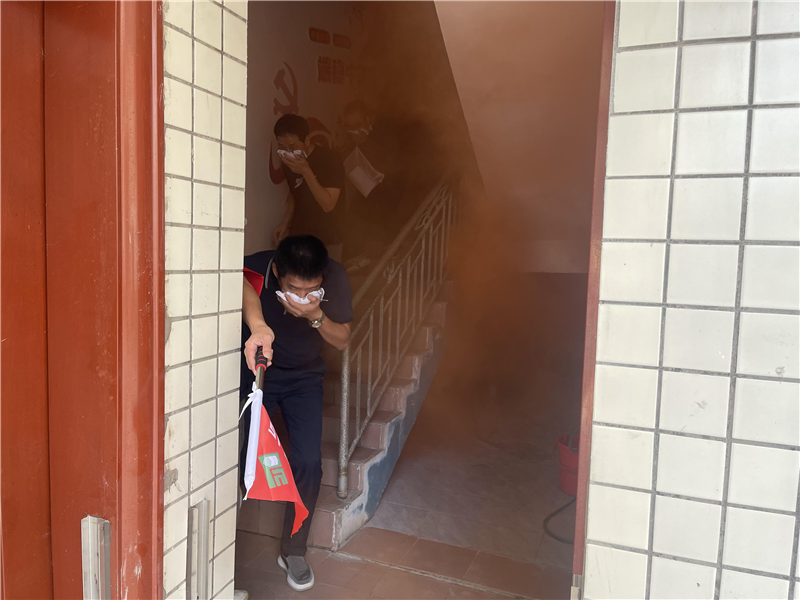為確保疏散演練安全、順利進(jìn)行,福州庫作出周密部署,制定詳細(xì)的疏散演練方案,對疏散路線及消防安全引導(dǎo)員作出明確安排。本次演練模擬福州庫辦公樓發(fā)生火災(zāi)火警,以呼喊、哨聲、煙霧彌漫為信號拉開演練帷幕,全體人員在消防引導(dǎo)員的正確帶領(lǐng)下迅速以濕巾捂住口鼻、彎腰貼墻撤離,有序按照預(yù)制逃生路線疏散,并前往指定地點集合。全員撤離至安全地點后,引導(dǎo)員迅速清點人數(shù)并向消防總指揮匯報撤離情況。