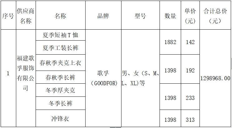 二、項目名稱:福建省儲備糧管理有限公司工服采購項目