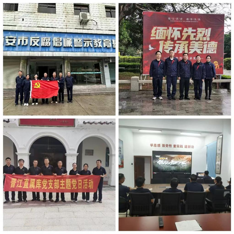 創(chuàng)建活動中,晉江直屬庫黨支部始終以習近平新時代中國特色社會主義思想為指導,緊密聯(lián)系工作實際,緊密聯(lián)系全體黨員的思想實際,號召全體黨員充分發(fā)揮戰(zhàn)斗堡壘作用,力爭成為組織信賴、員工擁護、業(yè)績突出的典范。支部結(jié)合工作要求,組織宣傳工作,營造“比、學、趕、超、爭上游”氛圍,發(fā)動全庫員工積極參與黨建品牌創(chuàng)建工作,保證黨建品牌創(chuàng)建活動有效開展。