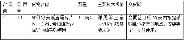 項目名稱:省儲糧安溪直屬庫庫區(qū)平面圖、告知牌及倉庫導向牌采購項目