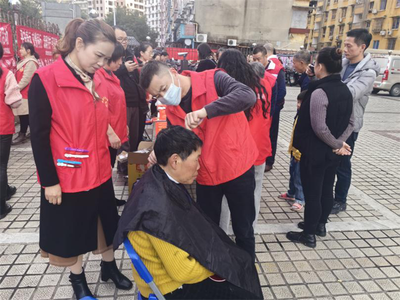 另一邊,排隊理發(fā)的居民也不少。志愿者貼心地為老人圍好圍布,一邊理發(fā),一邊和老人聊著過年的趣事,沒一會兒,老人便收獲了新發(fā)型,更有精氣神了。