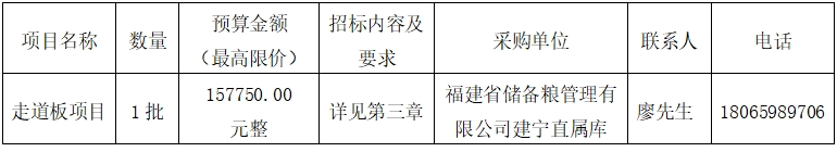 受福建省儲(chǔ)備糧管理有限公司建寧直屬庫(kù)委托,就走道板項(xiàng)目組織詢價(jià)采購(gòu),歡迎符合條件的供應(yīng)商參加報(bào)價(jià)。