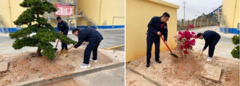 大家小心翼翼的揮鍬挖土,為樹苗準(zhǔn)備新家,有的修枝剪葉、除雜草,當(dāng)好綠化“美容師”,有的手提水桶為綠植灌溉,神彩飛揚(yáng)。南安直屬庫正在合奏出一首春天的交響曲。