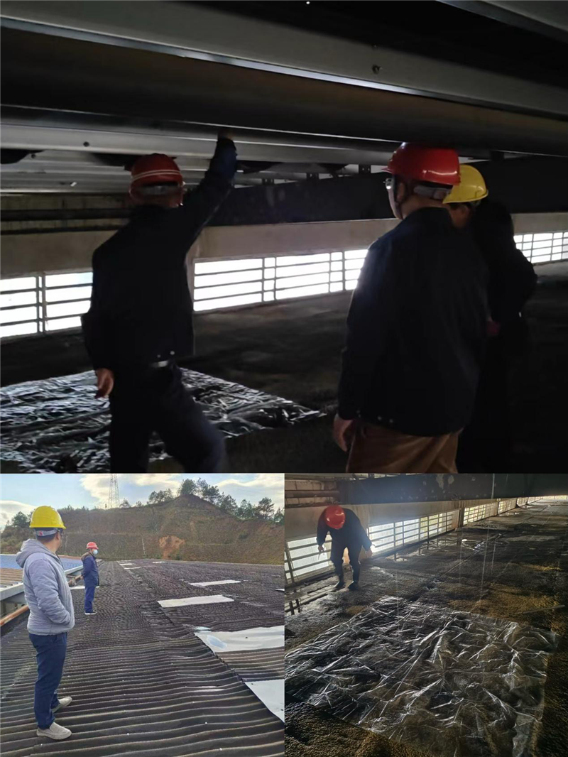 3月27日,武平直屬庫組織全體員工開展防汛、備汛隱患排查。對庫區(qū)高邊坡,倉房、附屬設(shè)施屋頂、墻、門、窗、屋面天溝、倉房四周排水溝、建筑排水管、下水管井等重點區(qū)域進(jìn)行全面排查。經(jīng)檢查發(fā)現(xiàn)屋頂因波形瀝青瓦老化腐朽,導(dǎo)致雨水下漏,造成個別倉出現(xiàn)滲漏情況。武平直屬庫已采取三種防范措施保安全,一是更換漏水嚴(yán)重的波形瀝青瓦;二是在滲漏的波形瀝青瓦下方聚氨脂泡沫保溫層上輔設(shè)塑料薄膜引水導(dǎo)流,防止雨水下滲;三是滲漏部位倉內(nèi)糧面鋪設(shè)塑料薄膜、麻袋,防止糧堆滲水影響儲糧安全。