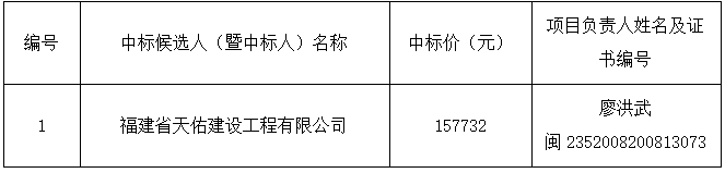 本項目于 2024年04 月12日 15:00在福建鉅學(xué)工程管理有限公司(長汀縣騰飛二路1號天守公寓第四幢第一單元四層)開標(biāo),經(jīng)評標(biāo)委員會評審,并報招標(biāo)人確定中標(biāo)人,現(xiàn)公示如下:
