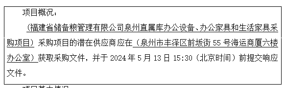 項目名稱:福建省儲備糧管理有限公司泉州直屬庫辦公設(shè)備、辦公家具和生活家具采購項目