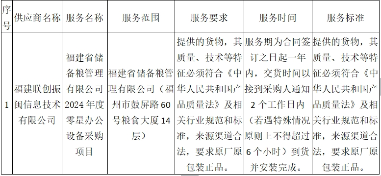二、項(xiàng)目名稱:福建省儲(chǔ)備糧管理有限公司2024年度零星辦公設(shè)備采購項(xiàng)目