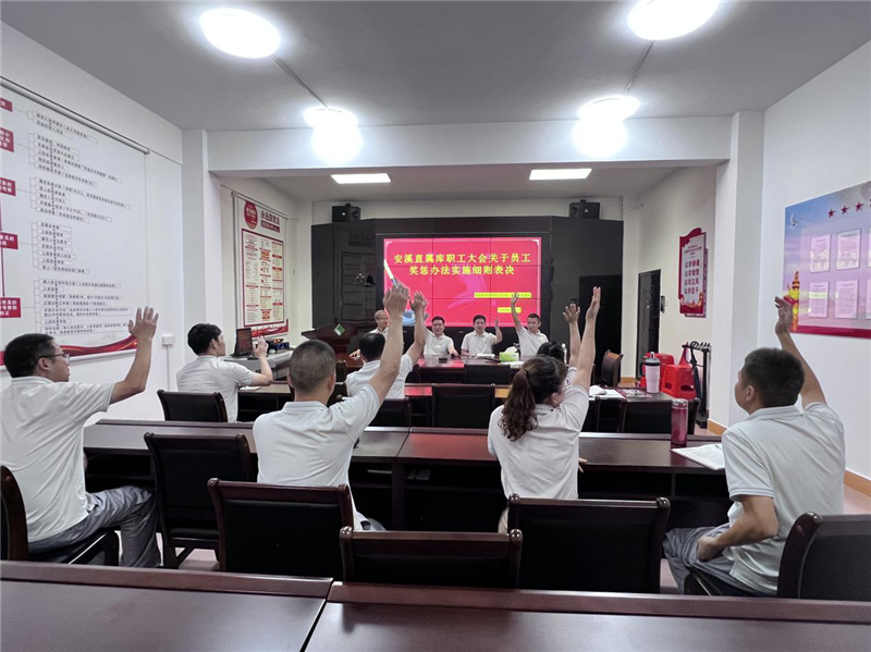 會(huì)上,工會(huì)主席吳明杰對(duì)《安溪直屬庫(kù)員工獎(jiǎng)懲辦法實(shí)施細(xì)則》進(jìn)行逐條解讀,加深員工對(duì)細(xì)則的理解和接受,隨后,會(huì)議以舉手表決的方式一致通過(guò)了《安溪直屬庫(kù)員工獎(jiǎng)懲辦法實(shí)施細(xì)則》。
