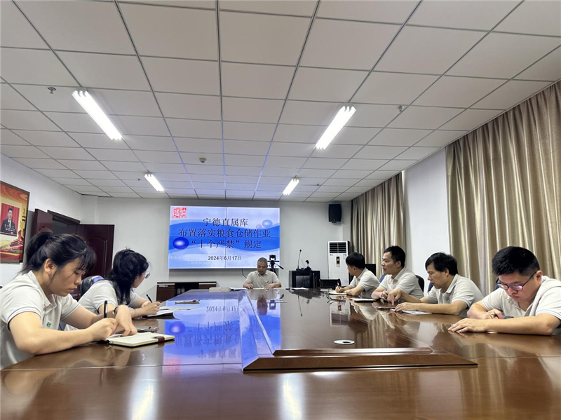 6月17日,寧德直屬庫組織全體員工共同學(xué)習(xí)糧食倉儲作業(yè)“十個嚴禁”安全知識及國家糧儲局、省糧儲局相關(guān)文件精神,在糧食倉儲作業(yè)全過程中,要把推動“十個嚴禁”在糧庫一線落實落地作為當前的大事要事,抓緊抓實抓出成效。