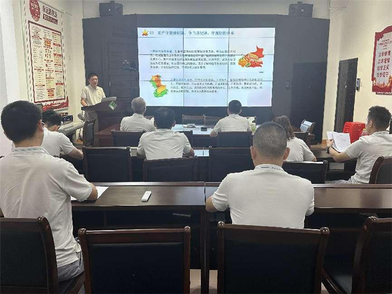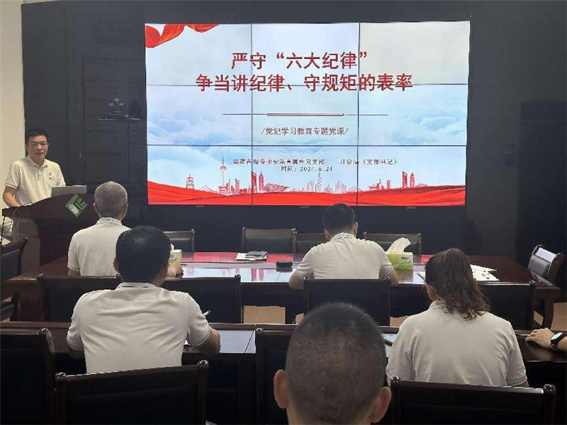 為深入學習貫徹習近平總書記關于黨紀學習教育的重要講話和重要指示精神,引導黨員干部真正做到學紀、知紀、明紀、守紀,推動黨紀學習教育走深走實,6月24日下午,安溪直屬庫黨支部書記葉宗清為支部全體黨員上了一堂以《嚴守“六大紀律”,爭當講紀律、守規(guī)矩的表率》為主題的黨紀學習教育專題黨課。