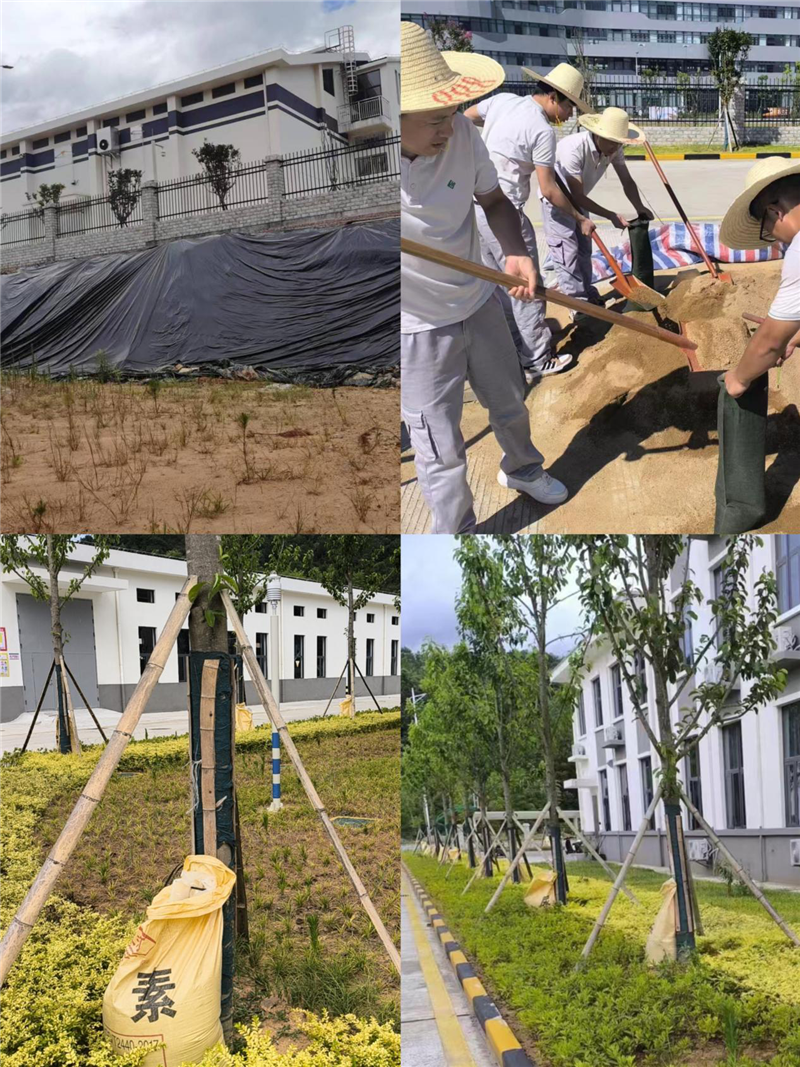 清理庫區(qū)周邊的雜物,并對庫區(qū)景觀樹加固支撐,避免被風(fēng)吹起造成損害,配合好園區(qū)管委會布設(shè)薄膜,做好護坡防護。