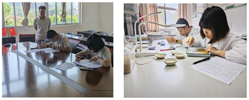 筆試內(nèi)容緊扣 “一規(guī)定兩守則”及糧食倉儲保管基本知識,檢驗入門理論掌握情況。現(xiàn)場實操則是通過模擬稻谷入庫現(xiàn)場,考察入庫快速檢驗流程和“智慧閩糧”信息化系統(tǒng)的使用,經(jīng)過一天的時間,兩位新員工最終以優(yōu)異的成績通過考核。