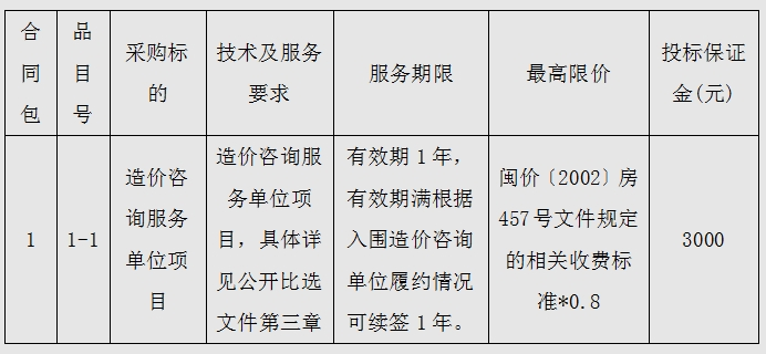 項(xiàng)目名稱:造價(jià)咨詢服務(wù)單位項(xiàng)目