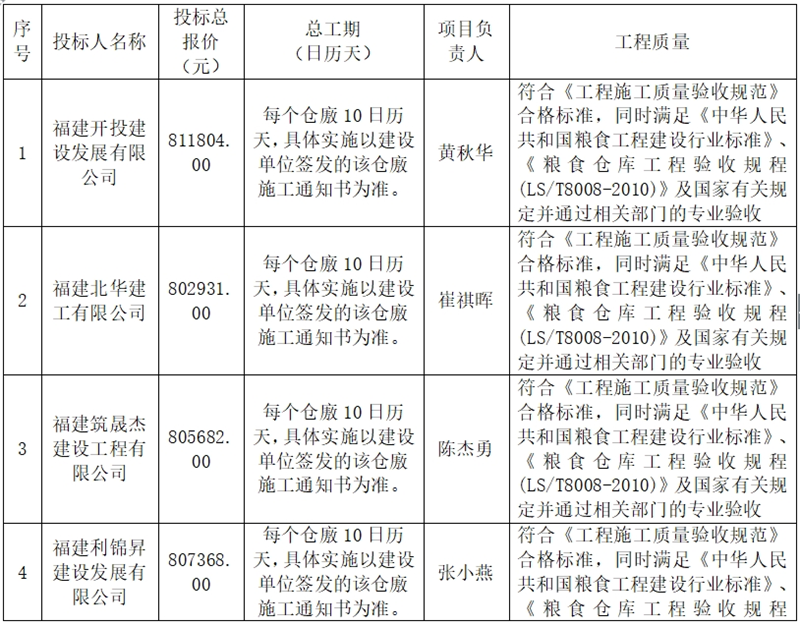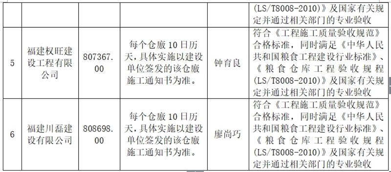 工期:每個倉廒10日歷天,具體實施以建設單位簽發(fā)的該倉廒施工通知書為準。