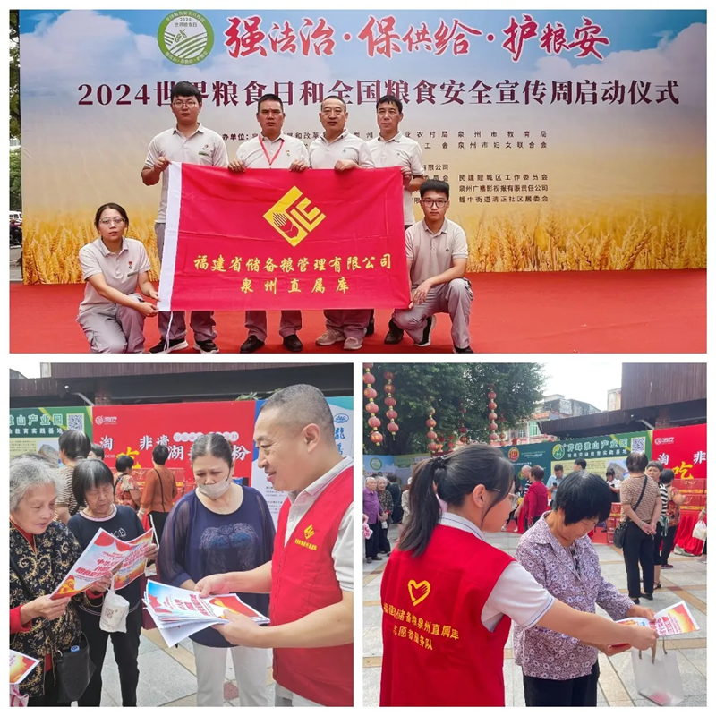 10月12日上午,泉州直屬庫參加由泉州市發(fā)展和改革委員會(huì)等單位聯(lián)合主辦的2024世界糧食和全國糧食安全宣傳周啟動(dòng)儀式。活動(dòng)通過邀請專業(yè)人員進(jìn)行公益糧油安全知識(shí)現(xiàn)場宣講、問答等形式,提高市民對糧食安全形式的認(rèn)識(shí),推動(dòng)愛糧節(jié)糧行動(dòng)全面開展。
