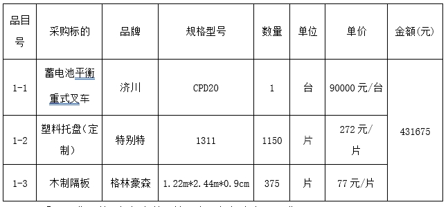 二、項(xiàng)目名稱:福建省儲(chǔ)備糧管理有限公司長(zhǎng)樂(lè)直屬庫(kù)購(gòu)置叉車、托盤(pán)和隔板采購(gòu)項(xiàng)目