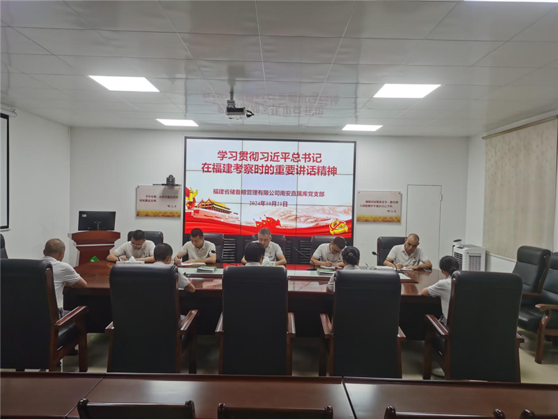 10月21日,南安直屬庫黨支部召開黨員大會,專題學習習近平總書記在福建考察時的重要講話精神及有關會議精神,研究部署貫徹落實措施。