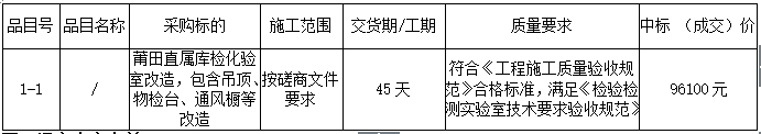 合同包1(莆田直屬庫(kù)檢化驗(yàn)室改造,包含吊頂、物檢臺(tái)、通風(fēng)櫥等改造 )