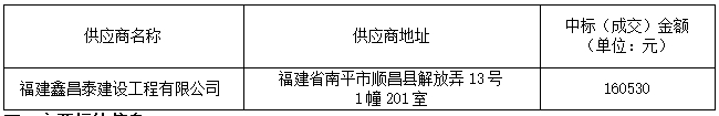 合同包1成交供應(yīng)商:福建鑫昌泰建設(shè)工程有限公司,最終得分:93.81分。