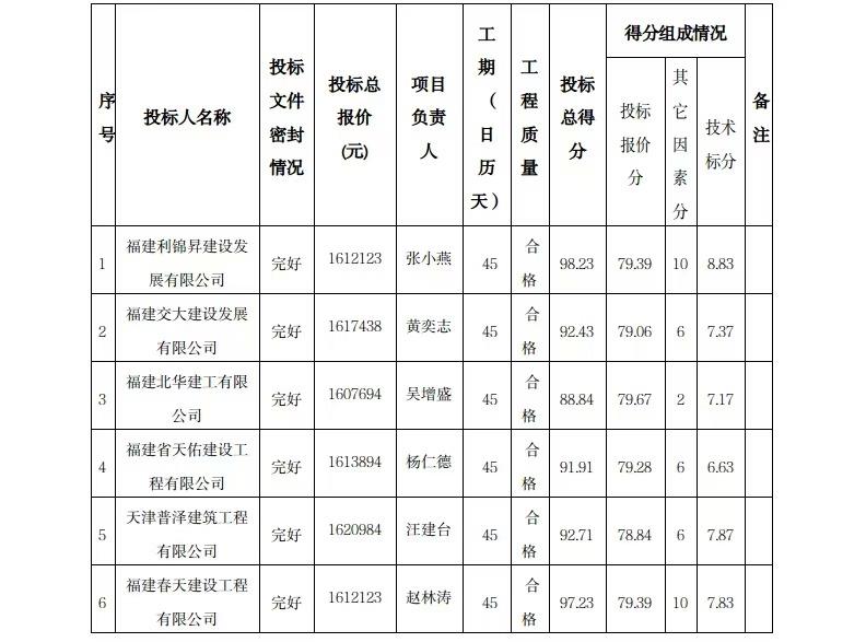 (1)第一中標候選人名稱: 福建利錦昇建設發(fā)展有限公司