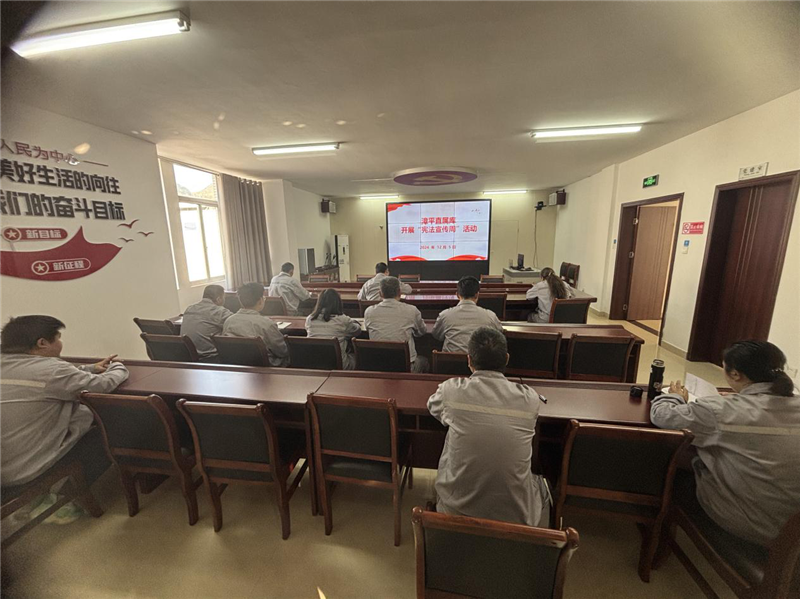 漳平直屬庫組織員工進(jìn)行集中學(xué)習(xí),深入解讀憲法知識和相關(guān)法律法規(guī),講解憲法賦予公民的基本權(quán)利和義務(wù),使員工了解自身的合法權(quán)益,同時增強(qiáng)履行義務(wù)的責(zé)任感,更好地在工作中保障自身的權(quán)利。讓員工深刻認(rèn)識憲法作為根本大法的地位和權(quán)威,提高尊法、學(xué)法、守法、用法的自覺性,減少工作中的違法違規(guī)風(fēng)險。同時,通過庫內(nèi)LED滾動屏、宣傳欄充分宣傳憲法相關(guān)知識,營造良好的法治文化氛圍,使法治觀念深入人心,促進(jìn)員工依法履行職責(zé)。