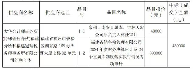 離任審計(jì)和2024年度財(cái)務(wù)決算審計(jì)及24個(gè)直屬庫(kù)制度落實(shí)執(zhí)行情況專項(xiàng)審計(jì)項(xiàng)目成交結(jié)果公告