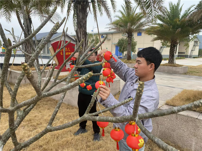 大家或手執(zhí)春聯(lián),細(xì)心比對(duì),將吉祥的話語(yǔ)貼于門(mén)楣,寄托著對(duì)新年的美好祈愿;或高舉燈籠,輕盈懸掛,讓火紅的希望照亮庫(kù)區(qū)的每一個(gè)角落,映襯出節(jié)日的喜慶與祥和;或穩(wěn)扶梯子,默默支撐,確保每一步都穩(wěn)健有力,為裝扮這方天地貢獻(xiàn)著自己的力量。當(dāng)嶄新和寓意著新年祝福的春聯(lián)貼于門(mén)楣,當(dāng)一串又一串紅火的燈籠掛上樹(shù)梢,當(dāng)寄托著大家新年愿望的中國(guó)結(jié)系在門(mén)前。就宛如紅綢彩帶迎風(fēng)飄揚(yáng),金色的光輝與忙碌的身影交織成了一幅幅動(dòng)人的畫(huà)卷,整個(gè)庫(kù)區(qū)洋溢著濃厚的節(jié)日氛圍。