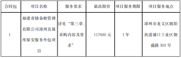 一、項目名稱:福建省儲備糧管理有限公司漳州直屬庫保安服務(wù)外包項目