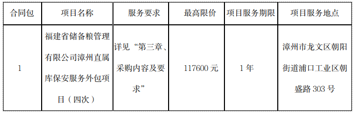 一、項目名稱:福建省儲備糧管理有限公司漳州直屬庫保安服務(wù)外包項目(四次)