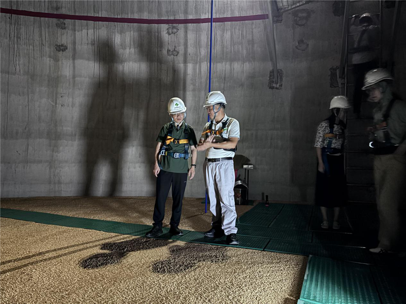 調(diào)研組實(shí)地走訪庫(kù)區(qū),重點(diǎn)察看淺圓倉(cāng)、工作塔等設(shè)施運(yùn)行狀況,詳細(xì)了解淺圓倉(cāng)的設(shè)計(jì)特點(diǎn)、進(jìn)出倉(cāng)作業(yè)流程及電子貨位卡等信息化管理手段的實(shí)際應(yīng)用情況,并圍繞糧食儲(chǔ)備管理、綠色儲(chǔ)糧技術(shù)應(yīng)用和信息化建設(shè)等議題展開(kāi)務(wù)實(shí)交流,并就進(jìn)一步加強(qiáng)兩地經(jīng)驗(yàn)互鑒、提升儲(chǔ)糧管理水平達(dá)成共識(shí)。