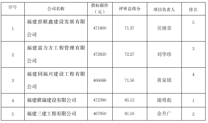 中標(biāo)候選人(即中標(biāo)人): 福建騏瑞建設(shè)有限公司 ;